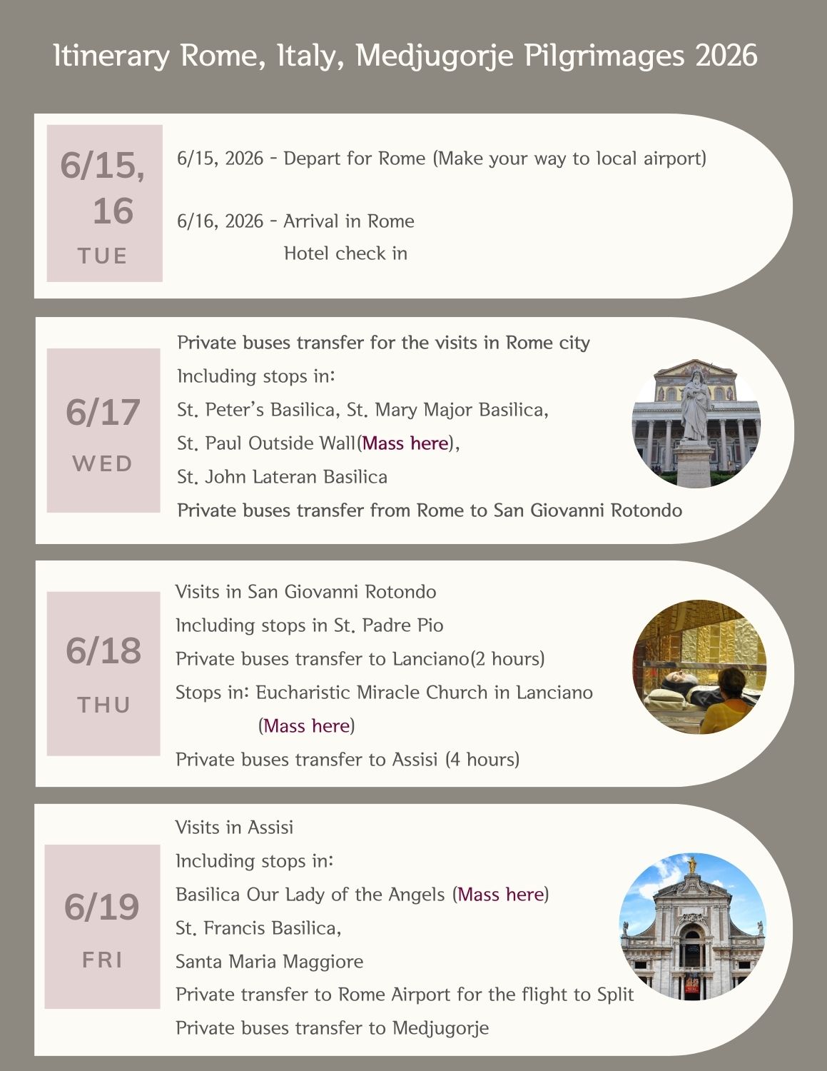 Itinerary Pilgrimages 2026